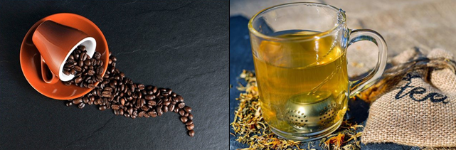 Kaffee und Tein aus Tee beruht auf der unterschiedlichen Freisetzung des Alkaloids: Coffein aus Kaffee ist