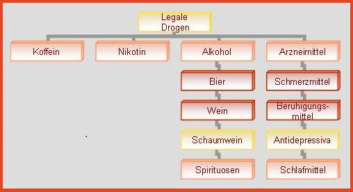 Alkohol Nikotin Koffein, Teein Schnüffelstoffe Verordnete Medikamente zurück Legale Drogen (Bild:f4_pixelio.de) Als legal werden Drogen bezeichnet die frei im Handel zu erwerben sind oder auch einer beschränkten Abgabe unterliegen. Dazu gehören u.a.: Alkohol, Nikotin, Koffein,Teein, Schnüffelstoffe, Verordnete Medikamente zum Anfang